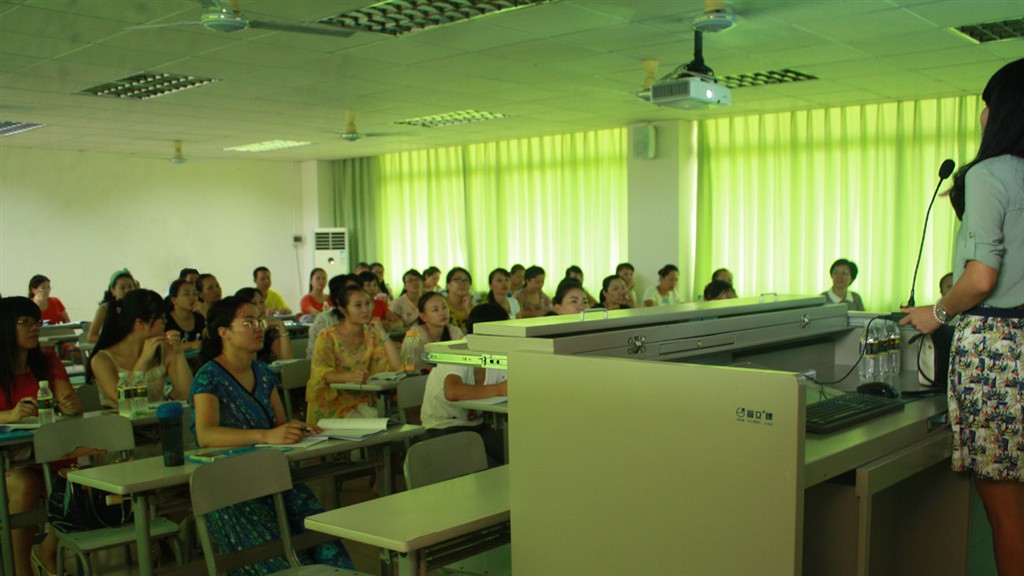 在师德师风的讲座专题中,海口市中心幼儿园顾问、前任园长陈海萍,用理论联系实际,通过一个个生动的案例教学,向大家阐述了师德的内涵。在专业理论讲座中,来自琼台师范高等专科学校副校长万力维教授围绕“幼儿园教师专业标准与专业发展”这一主题作了详实地讲解。她对“幼儿为本、师德为先、能力为重、终身学习”基本教育理念解读的通俗易懂,切合实际。使大家进一步明白了,一个合格幼儿教师必须具备四心,即“爱心、责任心、细心和耐心”。在业务能力讲座中,海南省学前教育研究培训院教研员吴海虹老师,通过提问答疑的方式向大家讲解幼儿园主题环境创设。她指出,教师要站在儿童的视角去创设主题环境,与会人员还和吴老师进行精彩了的互动发表自己对主题环境创设的看法。