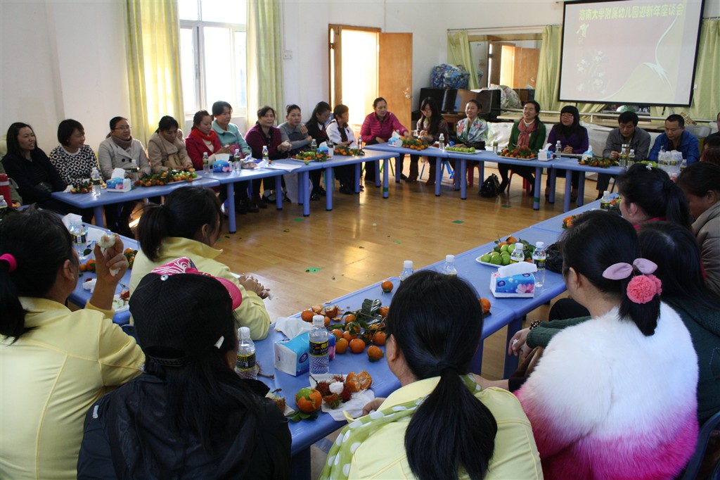 2014年12月31下午,yl7703永利附属幼儿园全体教职员工在多媒体室齐聚一堂共同迎接即将到来的新年,座谈会中大家畅所欲言表达对新年的期望和节日的祝福。