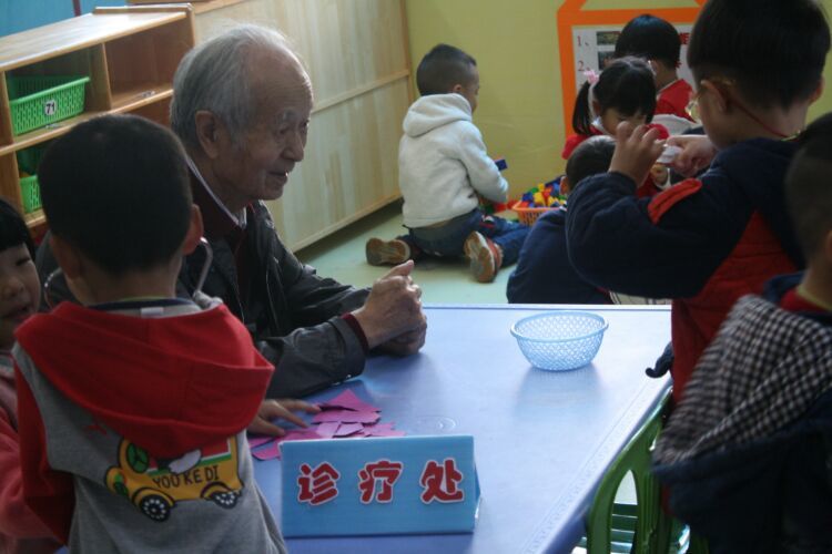 崔教授与孩子们亲切的互动