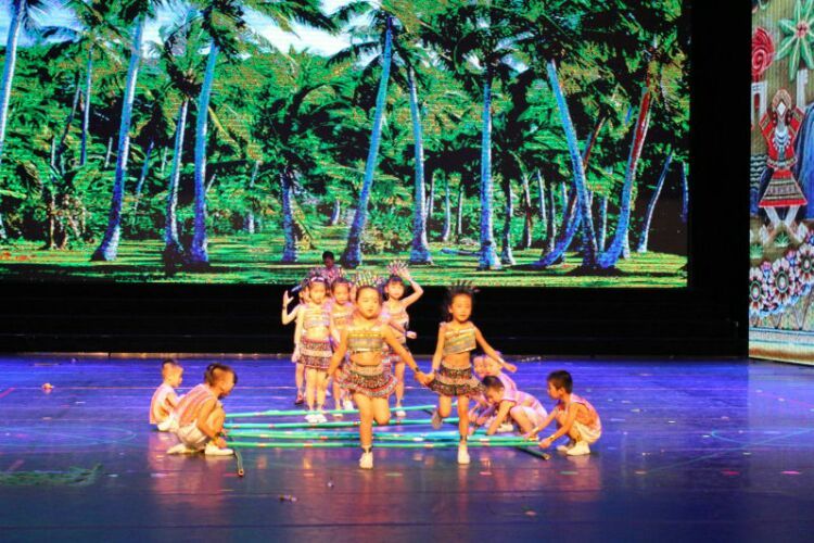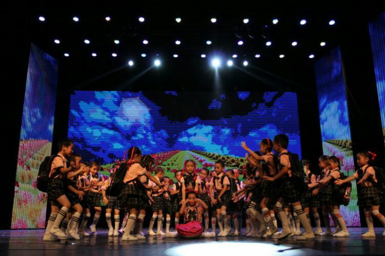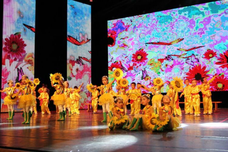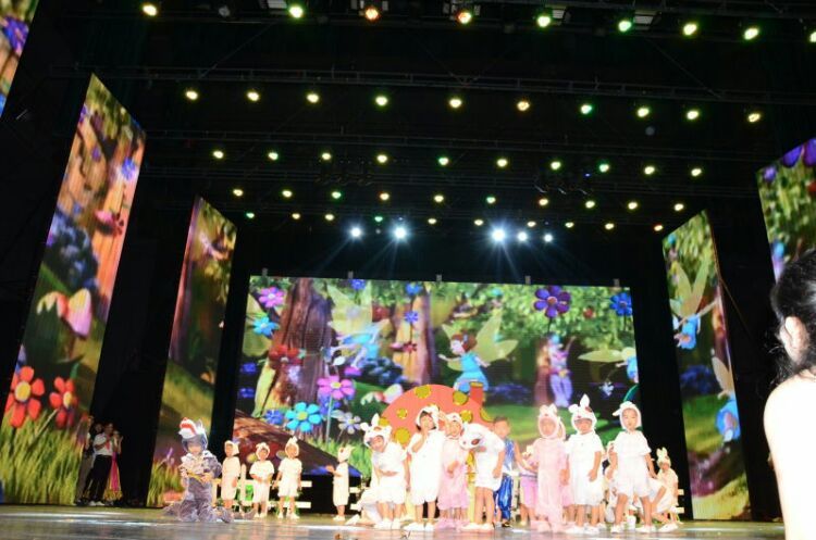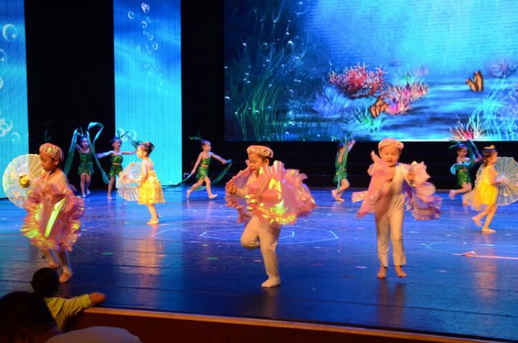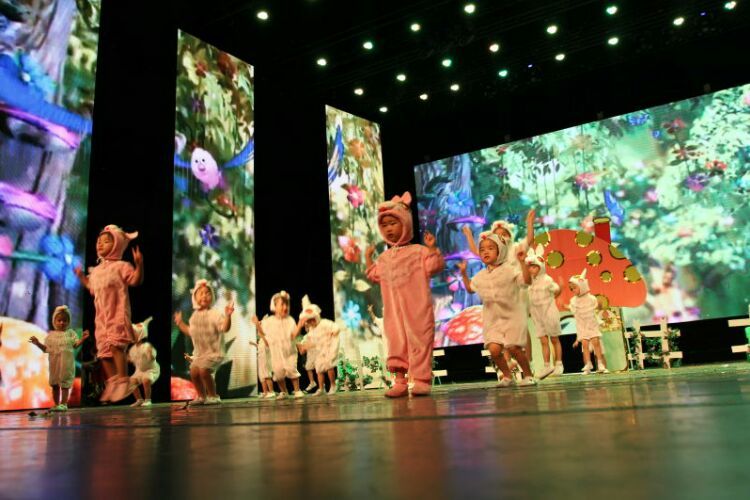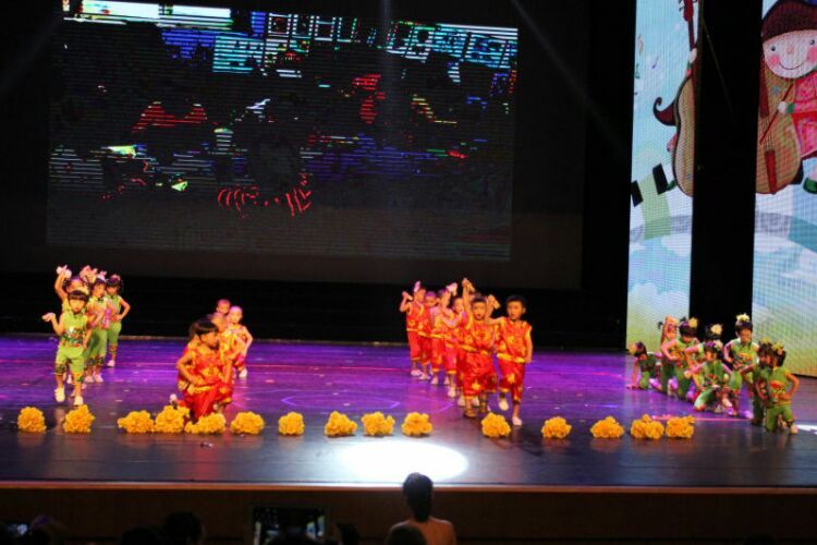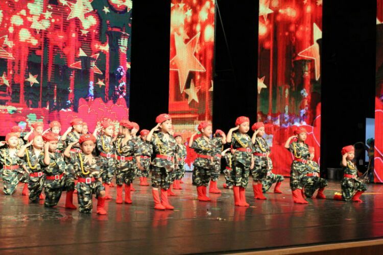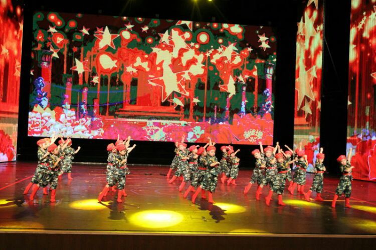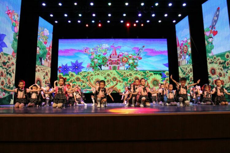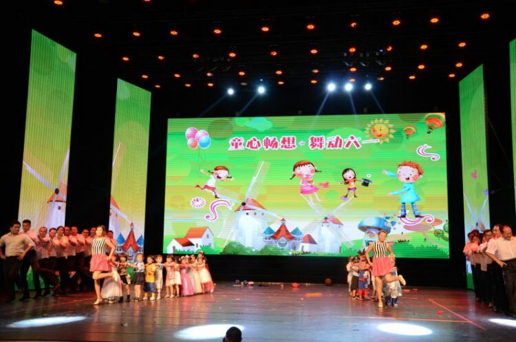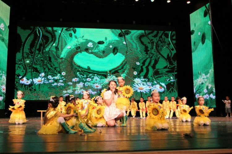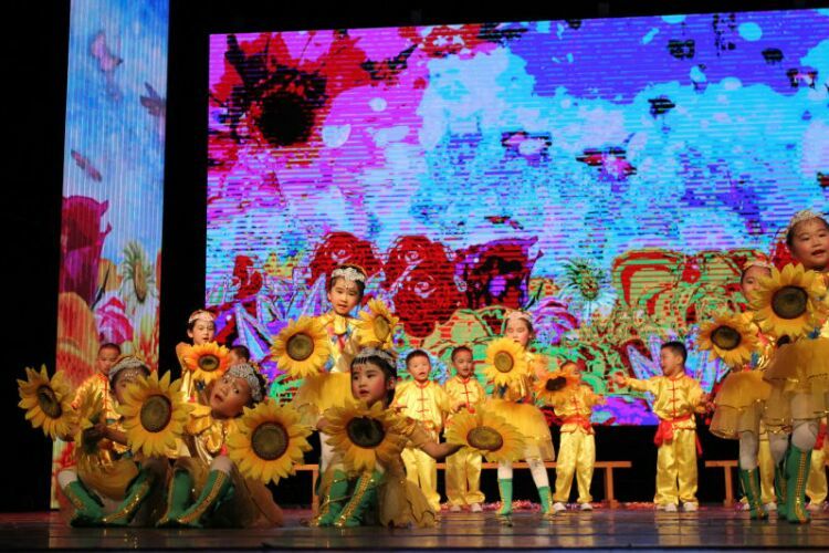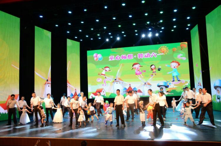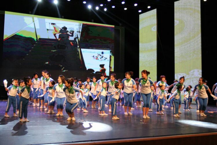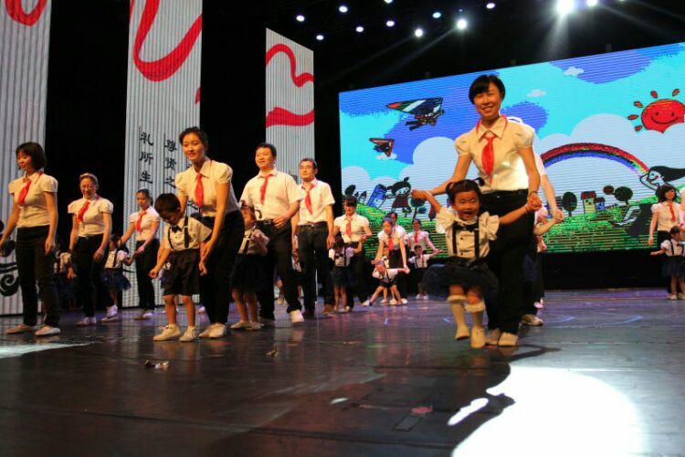 庆“六一”汇演在教师歌伴舞《美丽中国》中拉开序幕。