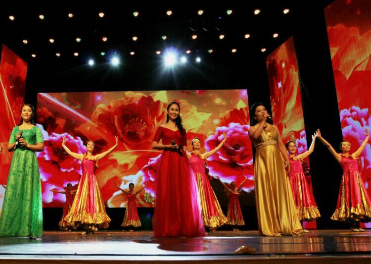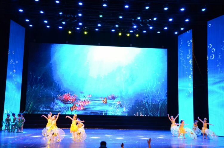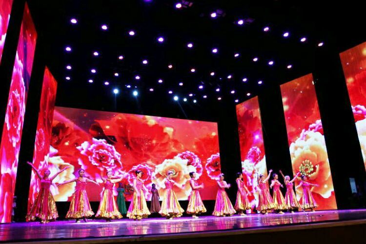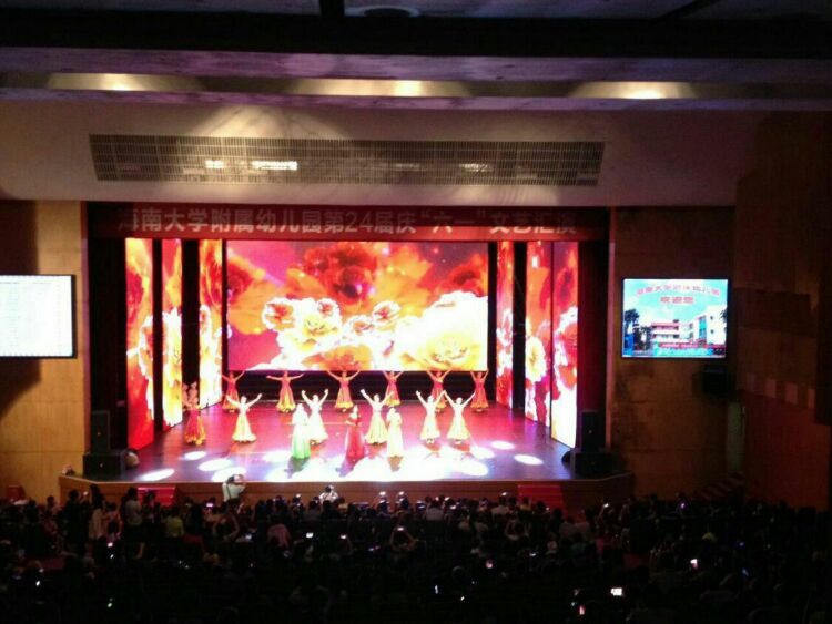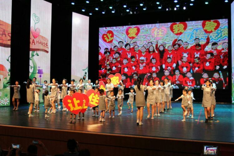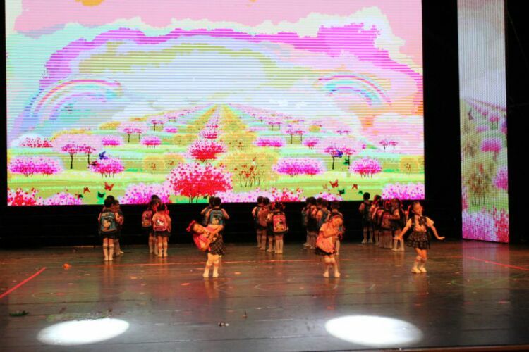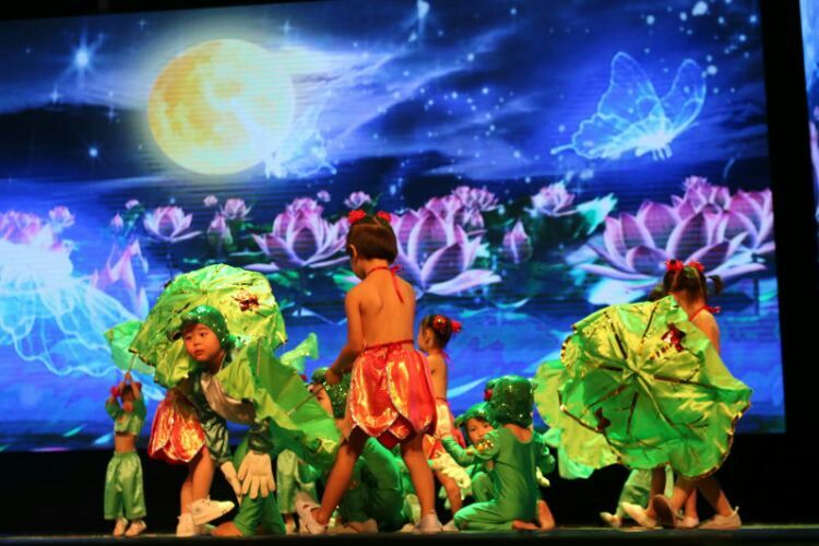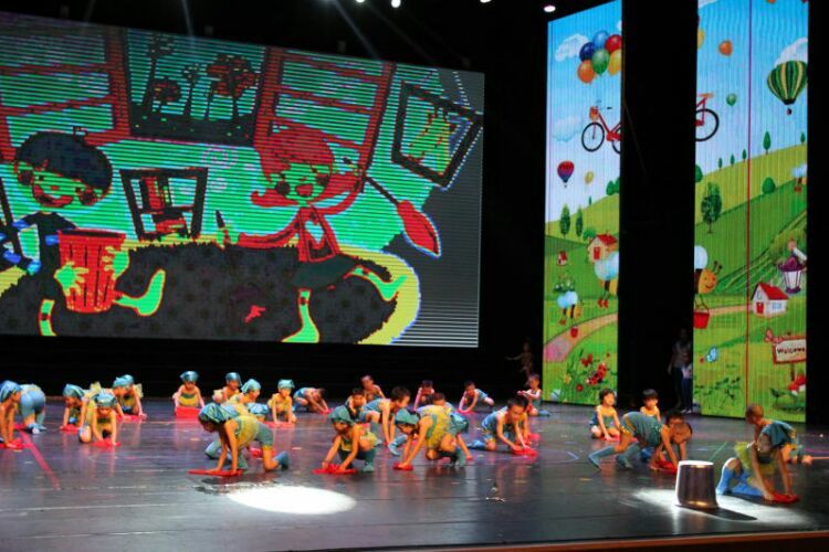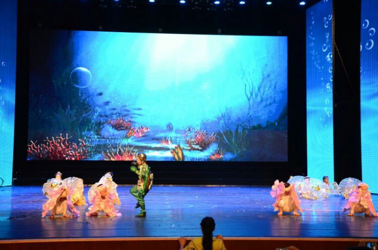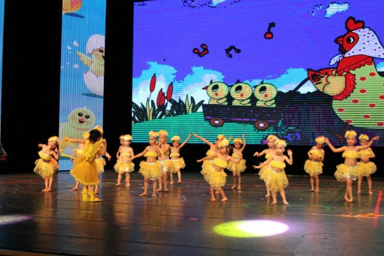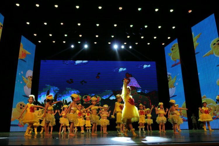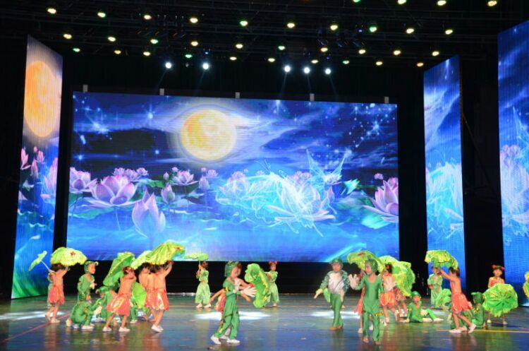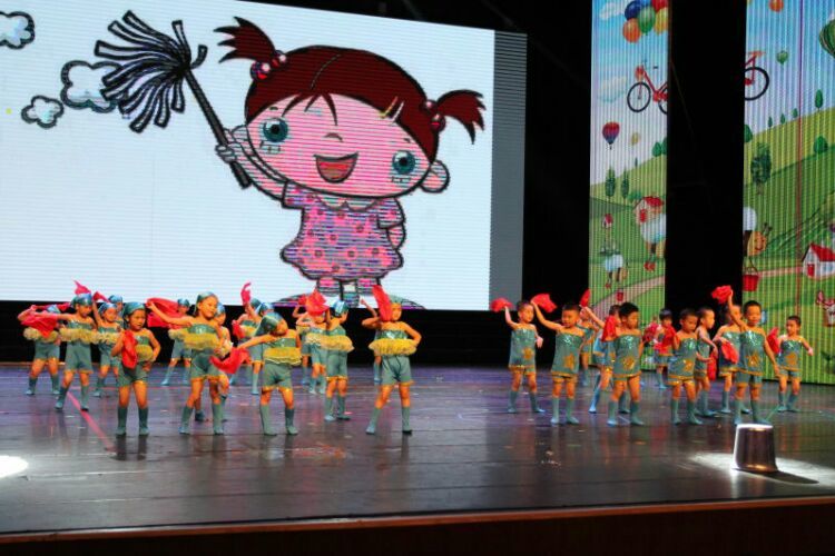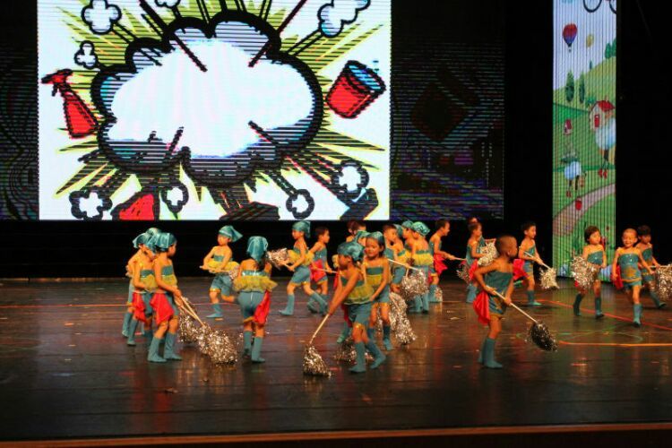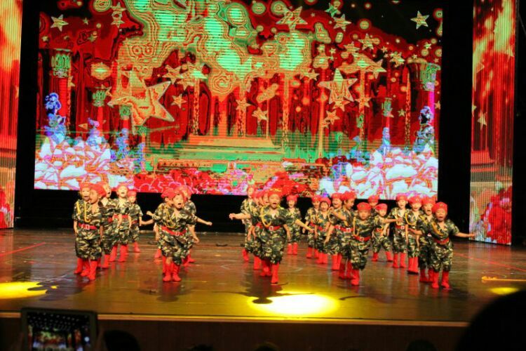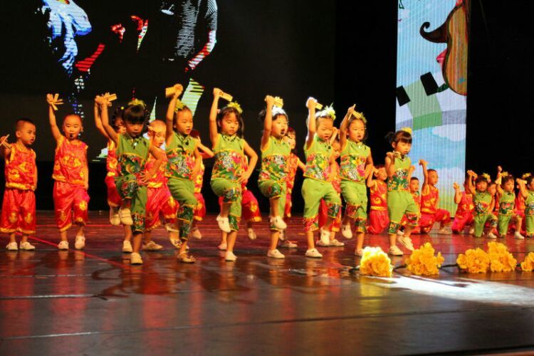 庆“六一”汇演在教师歌伴舞《美丽中国》中拉开序幕。