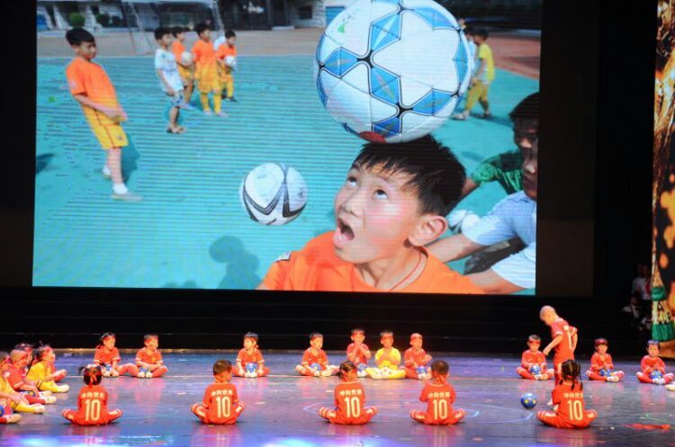 “只要有梦想在,总会有实现的一天”,小四班的足球宝贝们给大家带来了舞蹈《冲向世界》。