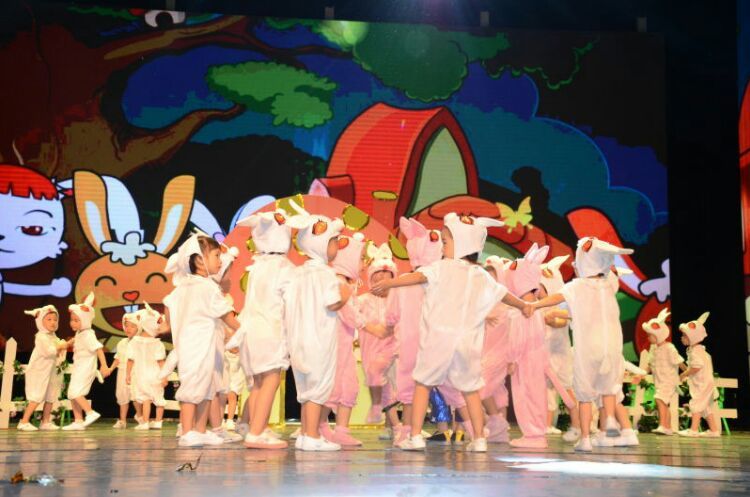 茂密的森林里住着一群可爱的小兔子,它们每天都和妈妈快乐地玩耍!不好,凶狠的大灰狼来啦,但是勇敢聪明的小白兔才不会怕呢,这是小一班的小朋友在表演角色舞蹈《小白兔和大灰狼》。