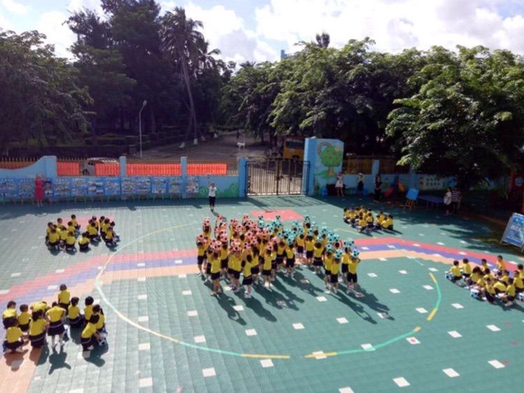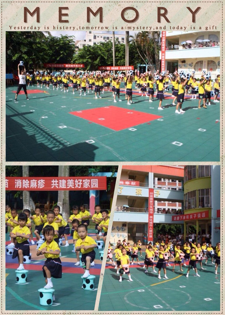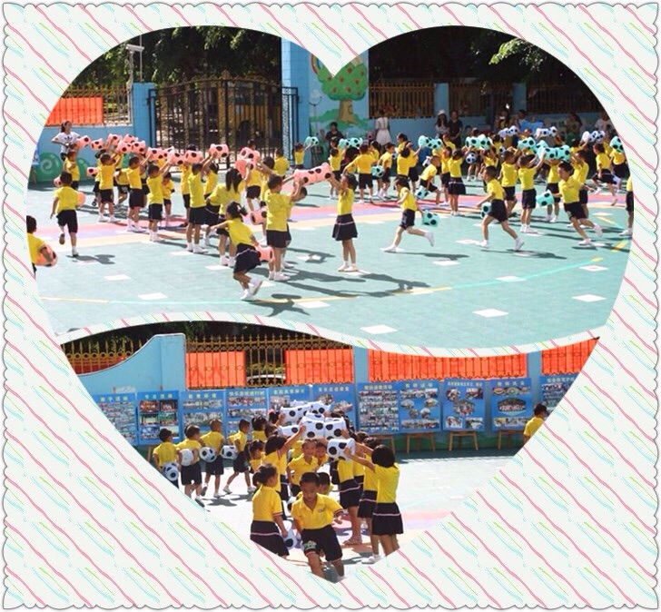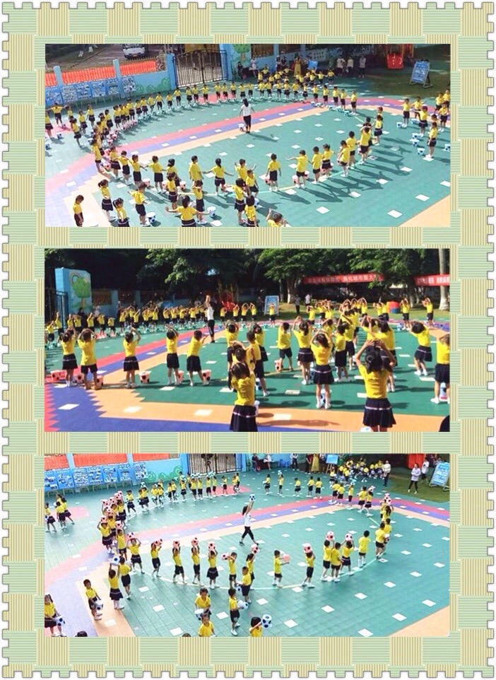 此次展示的体操是将幼儿生活中最熟悉的水桶,设计成幼儿喜欢的足球造型作为整个体操的运动器械编排了水桶操
