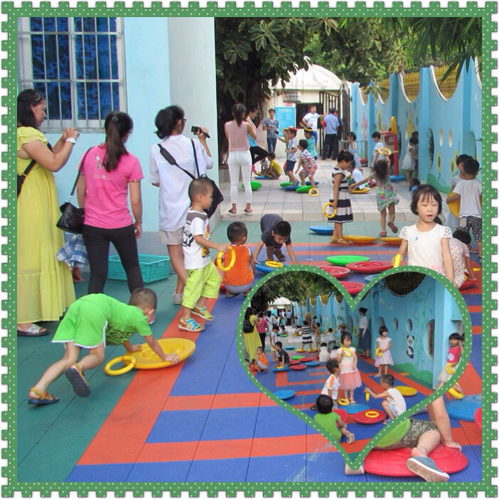 今天的培训活动分为三部分:第一部分是观摩我园大班幼儿体操,第二部分是观摩我园幼儿的户外活动,第三部分是研讨交流。