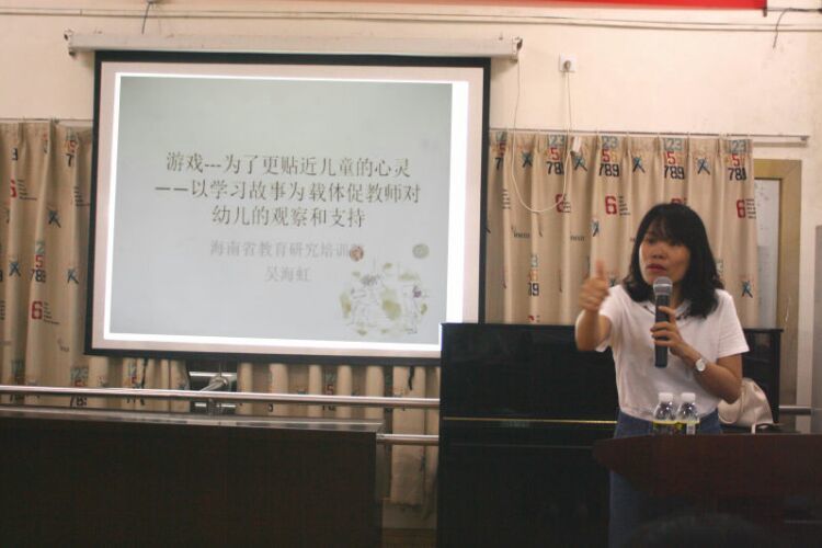 詹春容园长热烈欢迎我们的老朋友——海南省教育研究培训院教研员吴海虹老师