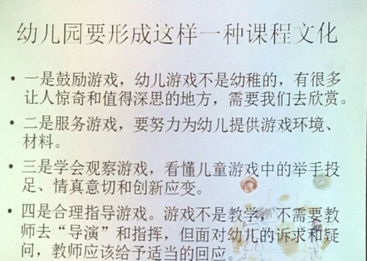 吴老师明确幼儿园要形成一种鼓励游戏、服务游戏、学会观察游戏、合理指导游戏的课程文化。