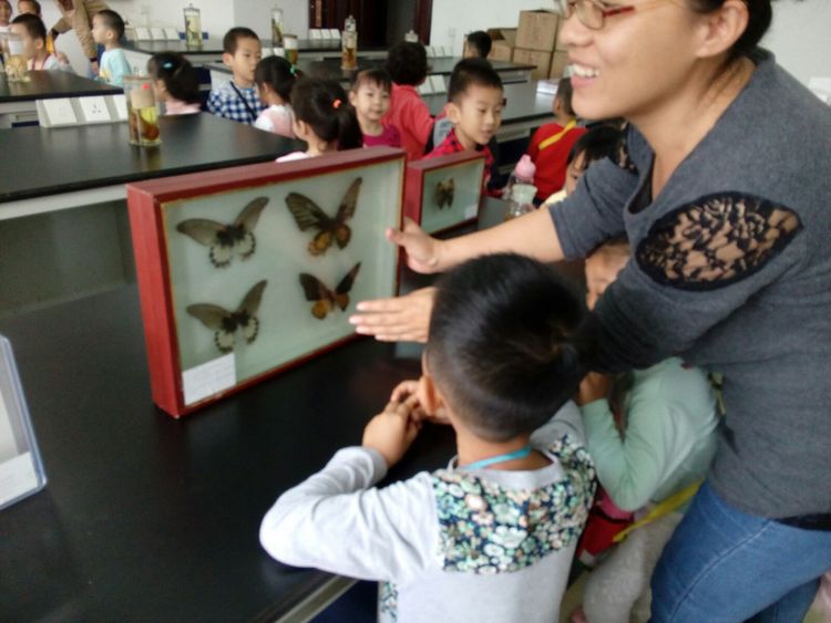 来到了昆虫标本室,我们就是个十足的好奇宝宝,什么都看看问问,老师们耐心的回答我们一个个问题,解释的好清楚让我们学到了许多,开心!谢谢老师们!