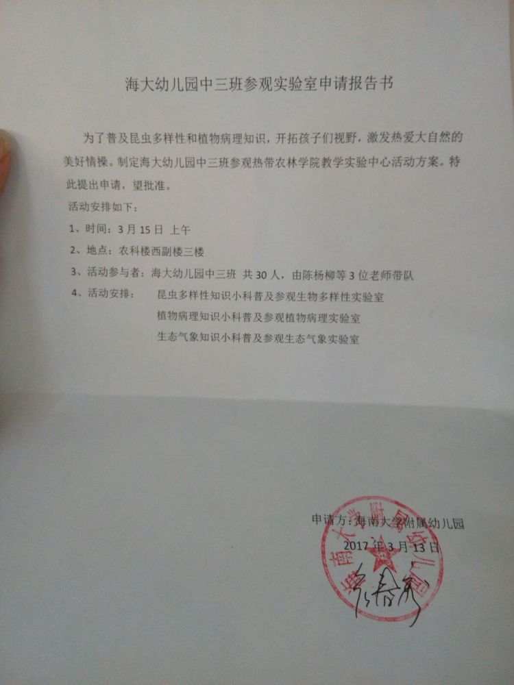 谭语萌妈妈、李欣瑜爸爸为孩子们今天的参观活动,跟单位领导沟通并写了申请!今天活动很成功,孩子们今天受益匪浅!感谢农学院的老师们,你们辛苦了!