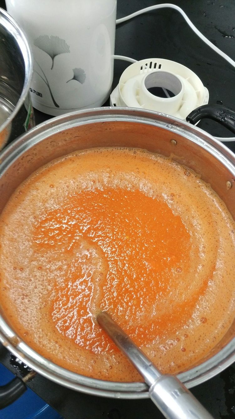 等了一会~哇!西红柿汁榨汁好了