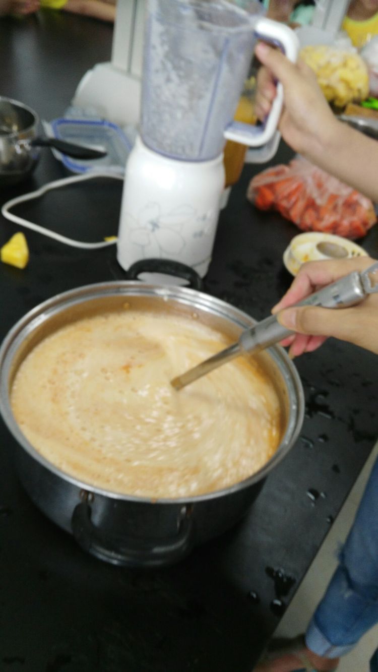 咦?菠萝汁的颜色变白了,没有了原先的黄颜色