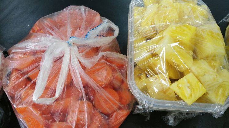 接下来我们准备看混合果汁:胡萝卜、芒果、菠萝。