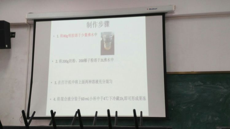 我们到了实验室c206~寇彧嘉妈妈准备好PPT给我们讲解果冻制作步骤~需要准备的材料