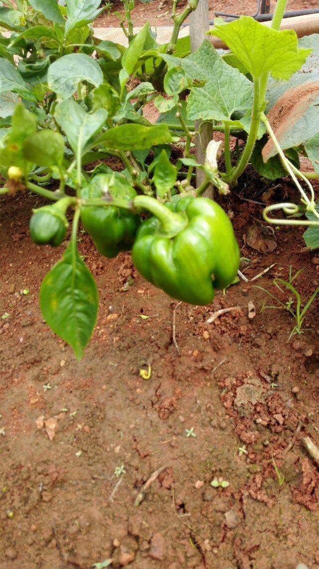 快来看啊,青椒也有红色的吗??老师说,熟透了的青椒会变红色的哦。