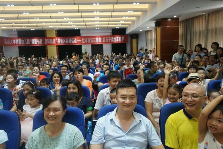 青蛙是怎么叫的,呱呱,还有不一样的声音吗?啯啯、咕咕……2017年6月14日我园开展“舞墨书香品味悦读”书香月系列活动——绘本说演三部曲:给孩子读绘本在yl7703永利图书馆多媒体报告厅举办。现场,台湾著名阅读推广人、儿童文学作家孙艺珏博士(笔名子鱼)为在座的家长和孩子们讲述了一个又一个有趣的故事,以此方式来与家长沟通儿童阅读的重要性及意义。