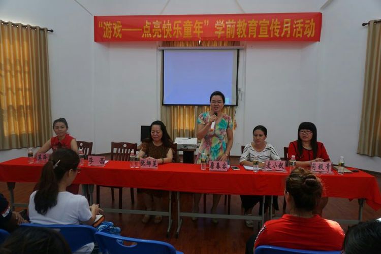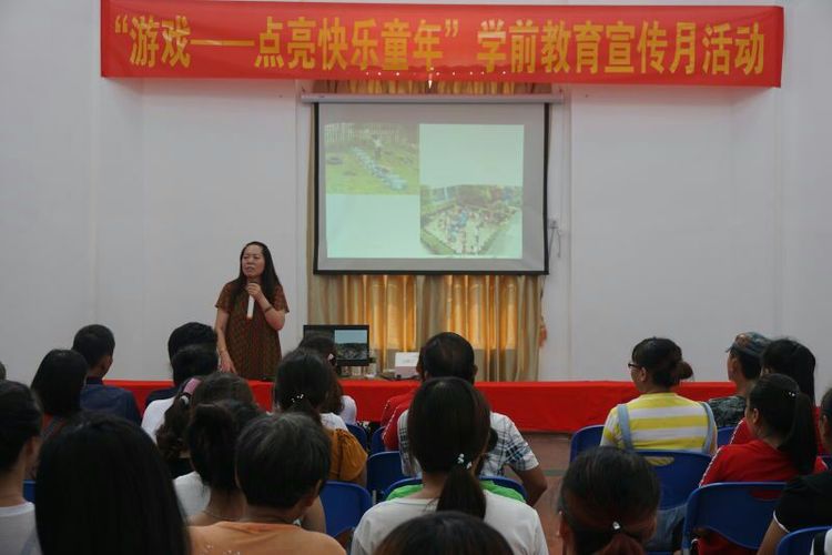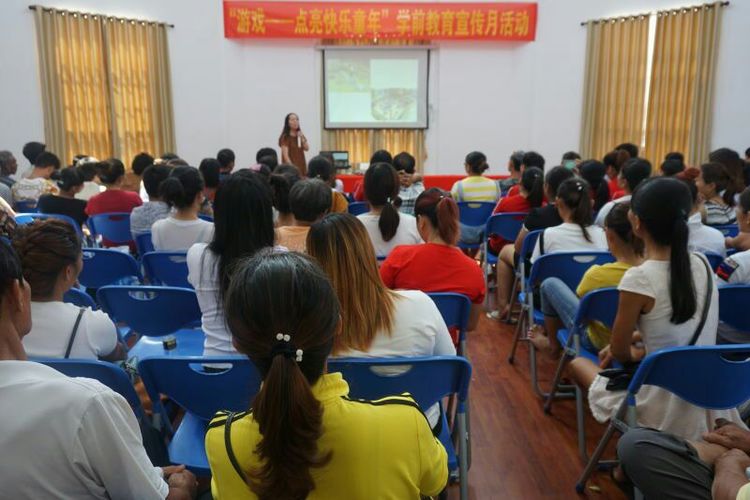2017年6月19日,yl7703永利附属幼儿园在园领导班子的带领下,一行5人前往万宁市万城镇集庄幼儿园开展帮扶活动。此次活动我们结合2017年学前教育宣传月的主题“游戏——点亮快乐童年”,开展学前教育宣传月系列活动——指导帮扶园指南宣传月工作及开展家长学校专题讲座。我们有幸邀请到海口市教育研究培训院幼儿教育教研员、特级教师——张娜莲老师为帮扶园的家长和老师们做主题为"安吉游戏带来的思考"的专题讲座,为家长们传经送宝,指点育儿迷津。
