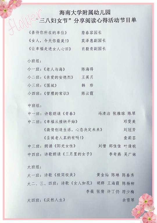 2018年2018年3月8日下午4点50分,我园为丰富女教职工课余文化生活,激发女性优雅魅力,增进大家对我园文化的了解,增强集体荣誉感。在"三八"妇女节到来之际通过读书分享,让教师们感受到书韵墨香的氛围。