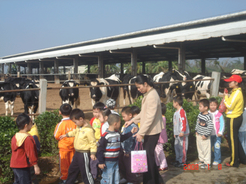 2008年1月8日早上,阳光明媚,海大幼儿园学前班全体师生们兴高采烈地乘车前往艾森牛奶乳业公司牧场参观,让孩子们和奶牛进行一次零距离的接触。