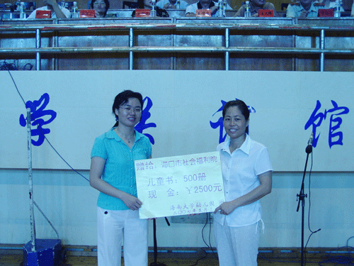 在活动开始之前,严庆副校长代表学校又再次向海大幼儿园捐赠了一批幼儿图书。我园全体教职员工及幼儿向福利院孩子奉献了爱心——共捐赠人民币2500元、幼儿书籍500册。接着,邢谷川副书记向幼儿朋友致以亲切的节日问候,向辛勤工作的幼儿园全体教职员工表示崇高的敬意。社会福利院儿童部林琼妆主任号召全体师生及家长朋友们多点关爱、多点鼓励福利院幼儿朋友的成长。詹春容园长向全体家长及社会各界汇报海大幼儿园的发展情况。