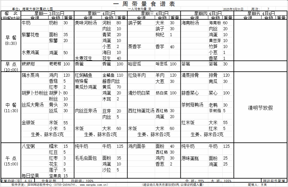 yl7703永利附属幼儿园2025年春季第七周食谱公告