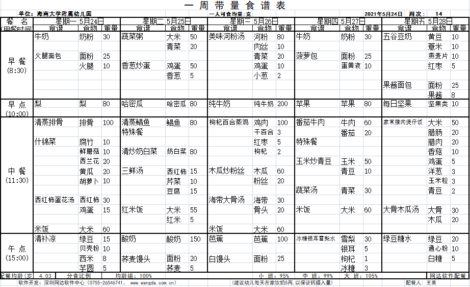 yl7703永利附属幼儿园第十四周食谱