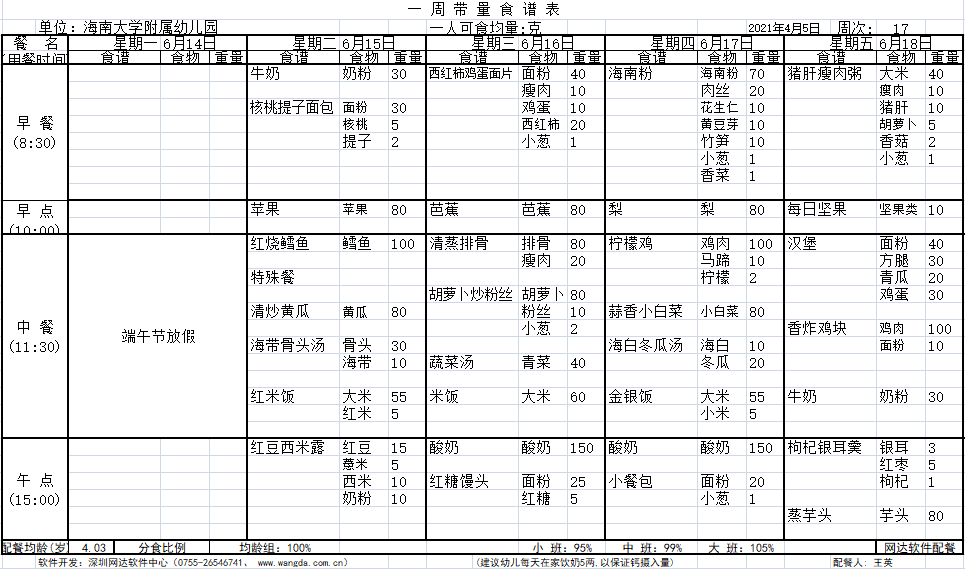 yl7703永利附属幼儿园第十七周食谱