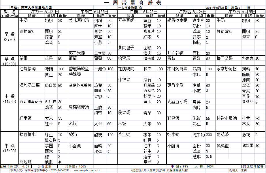 yl7703永利附属幼儿园第十八周食谱