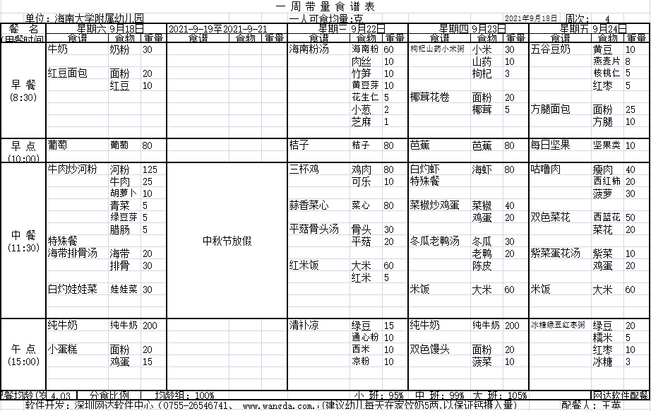 yl7703永利附属幼儿园2021年秋季第四周食谱