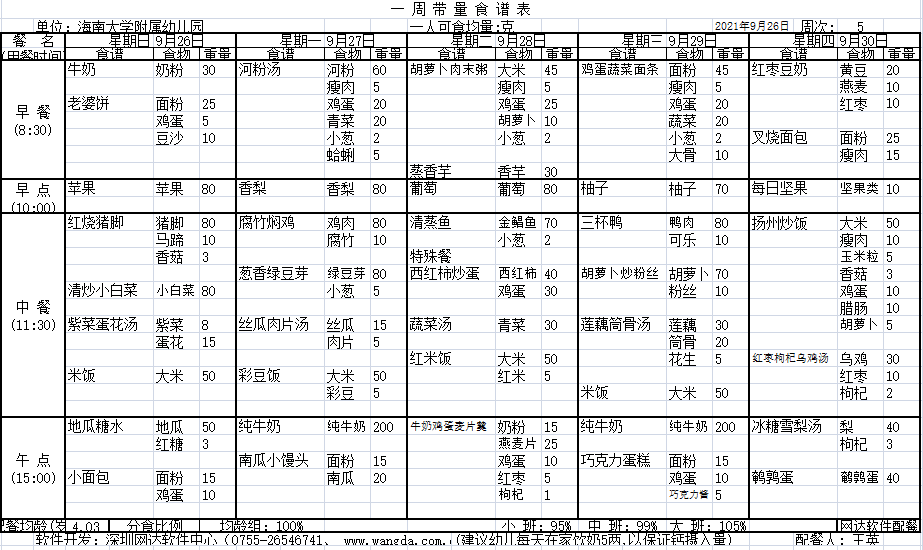 yl7703永利附属幼儿园2021年秋季第五周食谱