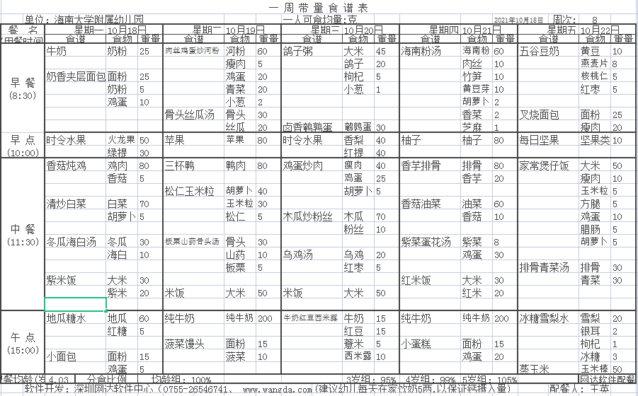 yl7703永利附属幼儿园2021年秋季第八周食谱