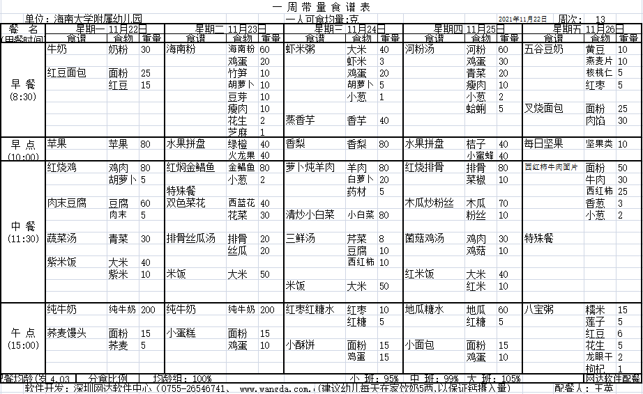 yl7703永利附属幼儿园2021年秋季第十三周食谱