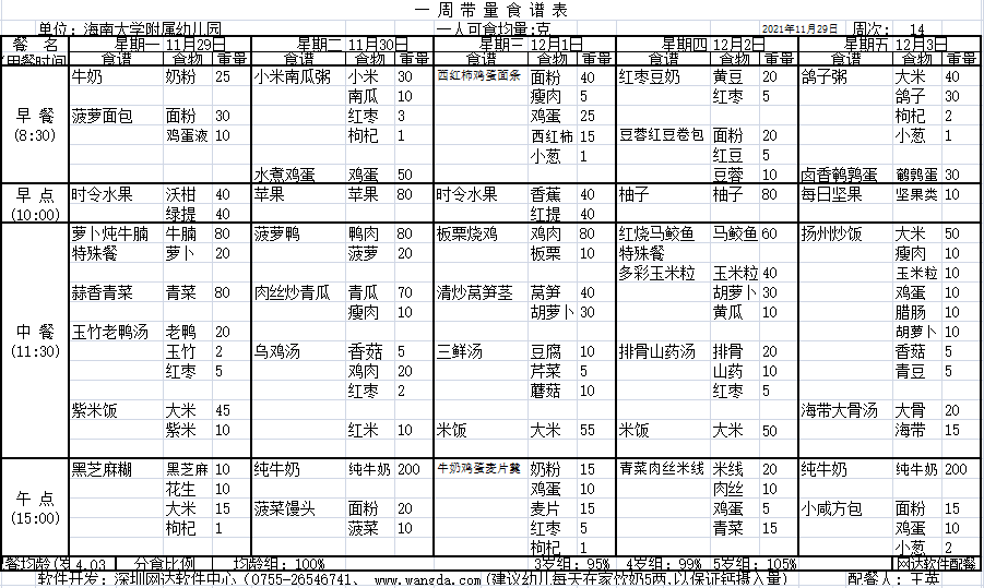 yl7703永利附属幼儿园2021年秋季第十四周食谱