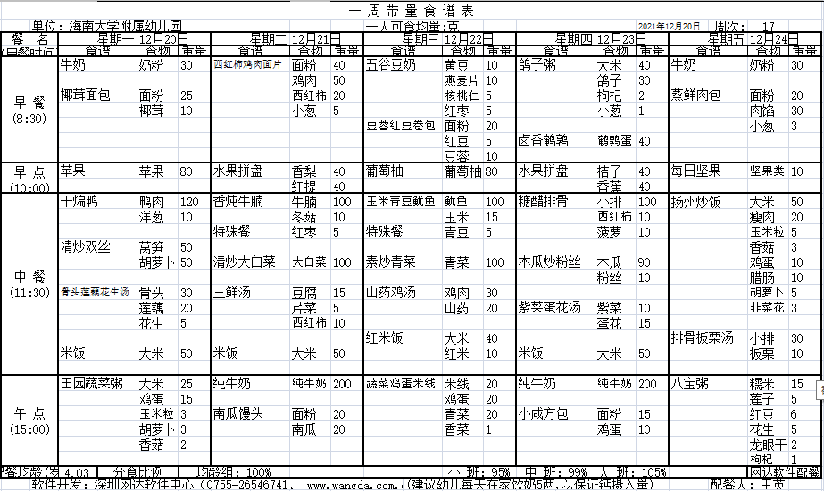 yl7703永利附属幼儿园2021年秋季第十七周食谱