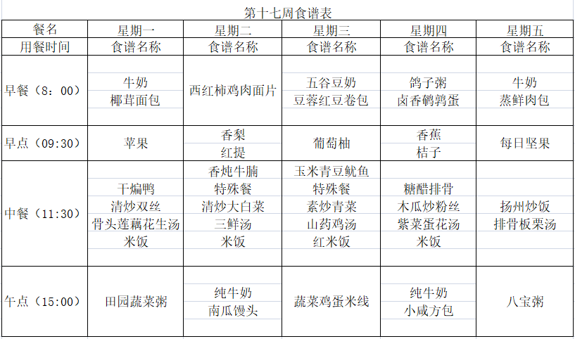 yl7703永利附属幼儿园2021年秋季第十七周食谱