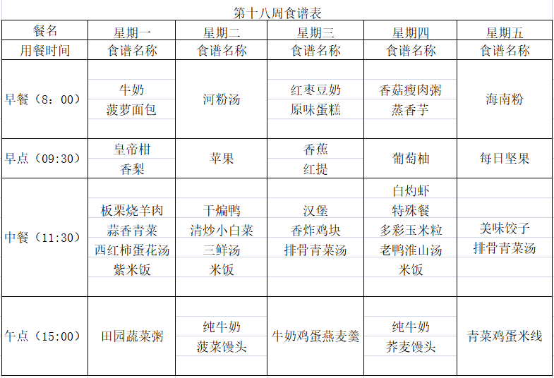 yl7703永利附属幼儿园2021年秋季第十八周食谱