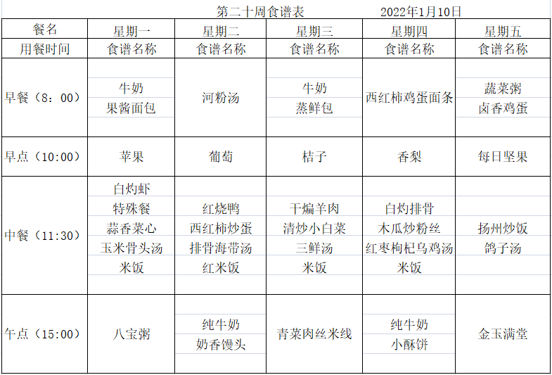 yl7703永利附属幼儿园2021年秋季第二十周食谱
