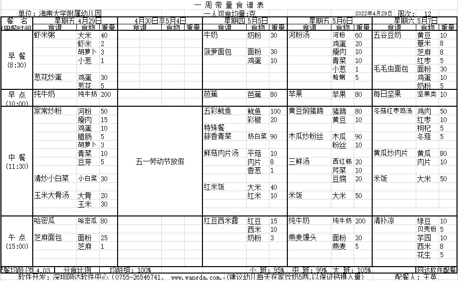 yl7703永利附属幼儿园2022年春季第十二周食谱