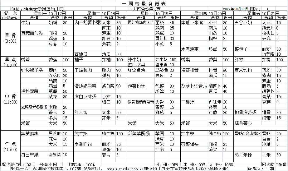 yl7703永利附属幼儿园2022年秋季第六周食谱