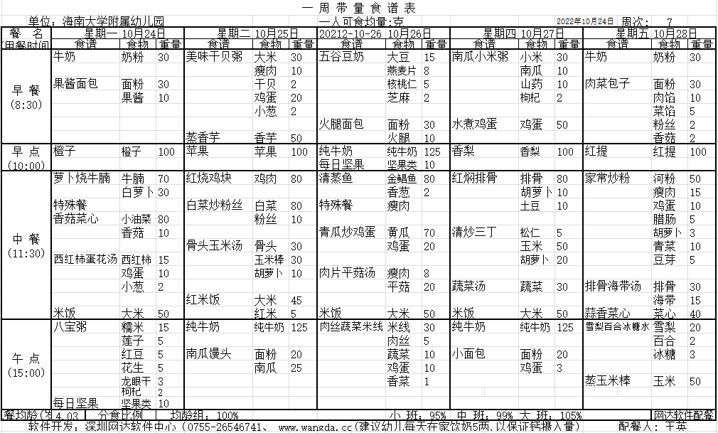yl7703永利附属幼儿园2022年秋季第七周食谱