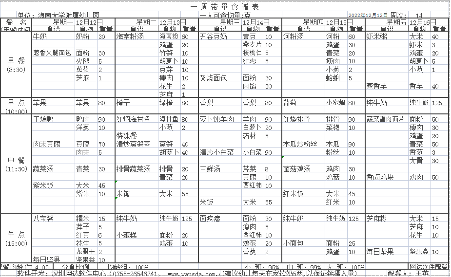 yl7703永利附属幼儿园2022年秋季第十四周食谱