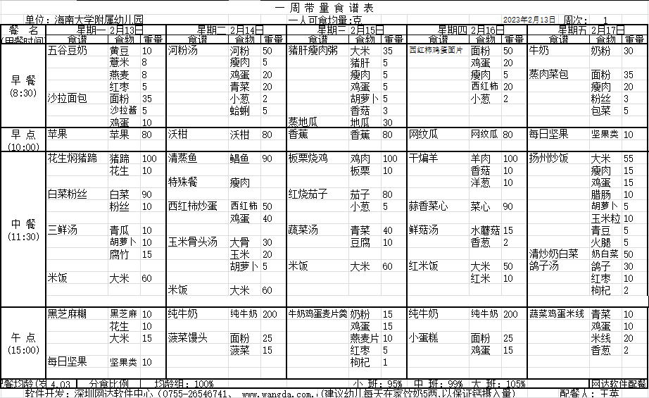 yl7703永利附属幼儿园2023年春季第一周食谱