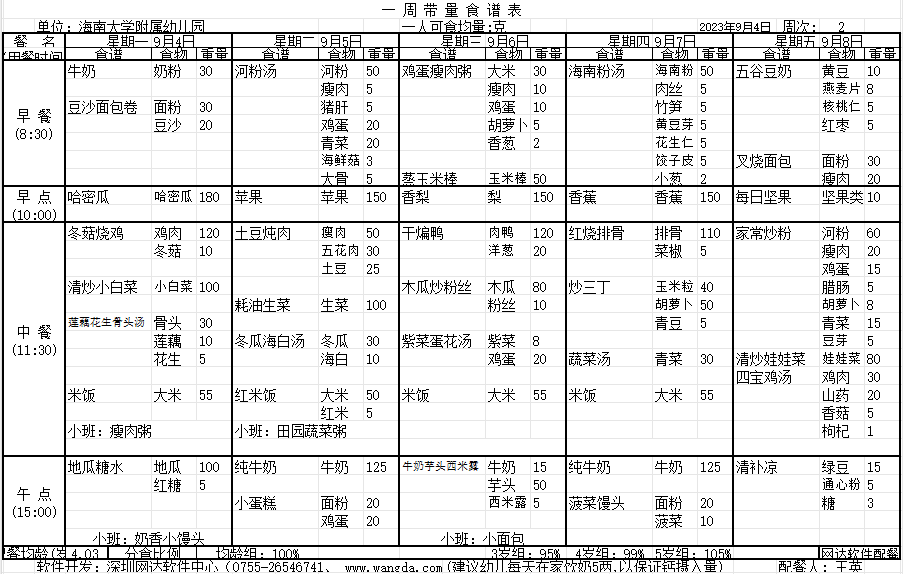 yl7703永利附属幼儿园2023年秋季第二周食谱