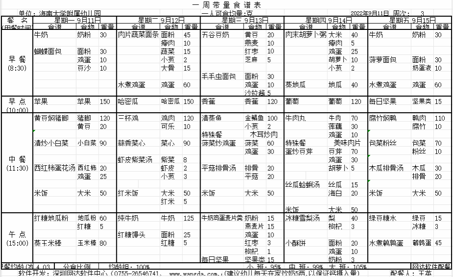 yl7703永利附属幼儿园2023年秋季第三周食谱