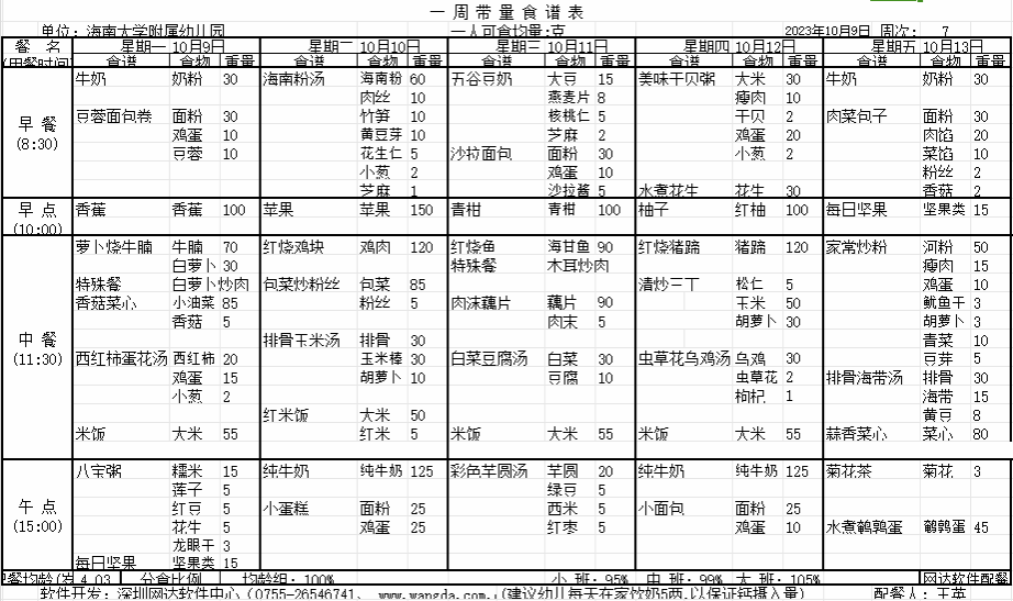 yl7703永利附属幼儿园2023年秋季第七周食谱