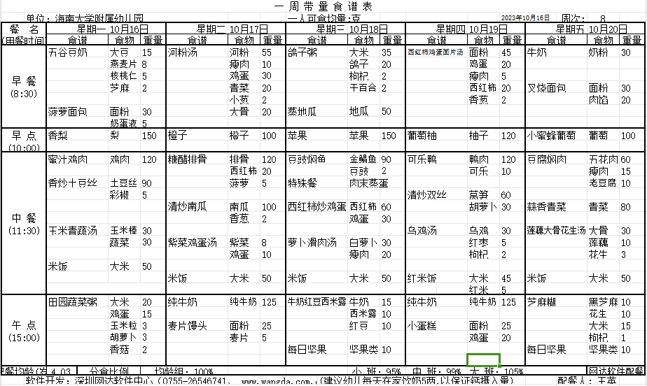 yl7703永利附属幼儿园2023年秋季第八周食谱