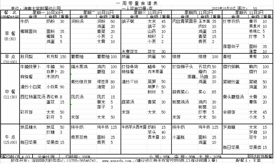 yl7703永利附属幼儿园2023年秋季第十周食谱