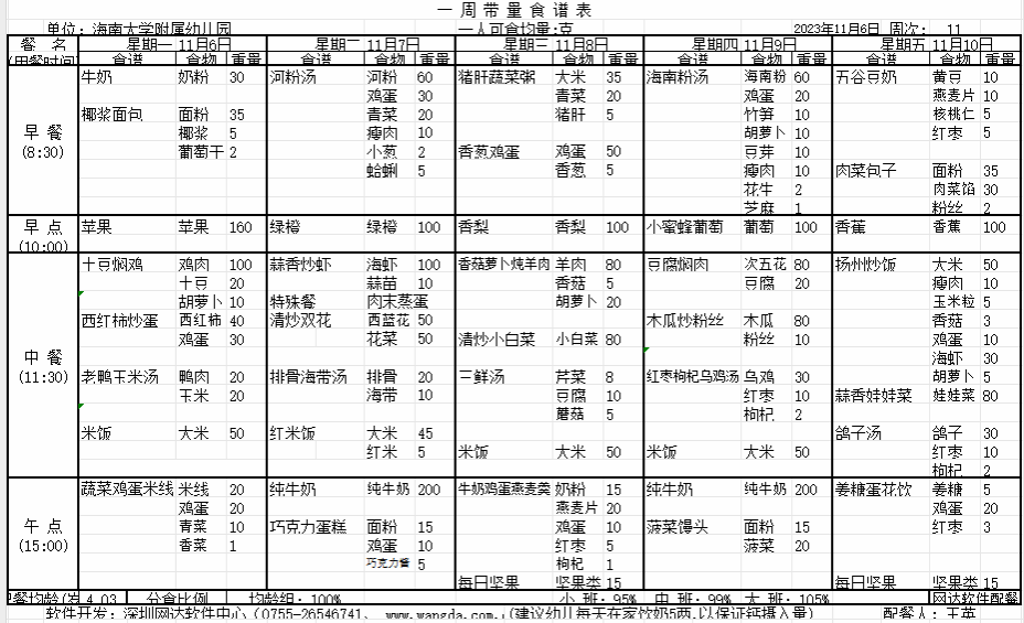 yl7703永利附属幼儿园2023年秋季第十一周食谱