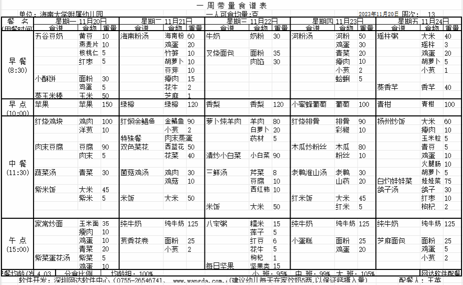 yl7703永利附属幼儿园2023年秋季第十三周食谱