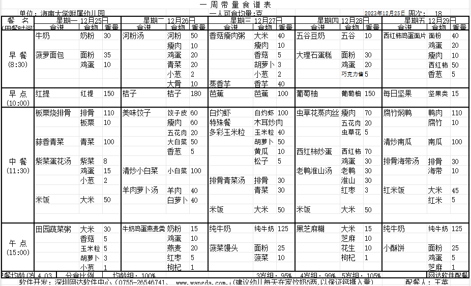 yl7703永利附属幼儿园2023年秋季第十八周食谱