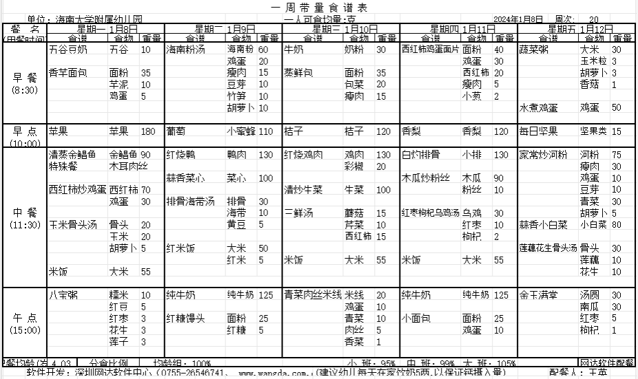 yl7703永利附属幼儿园2023年秋季第二十周食谱